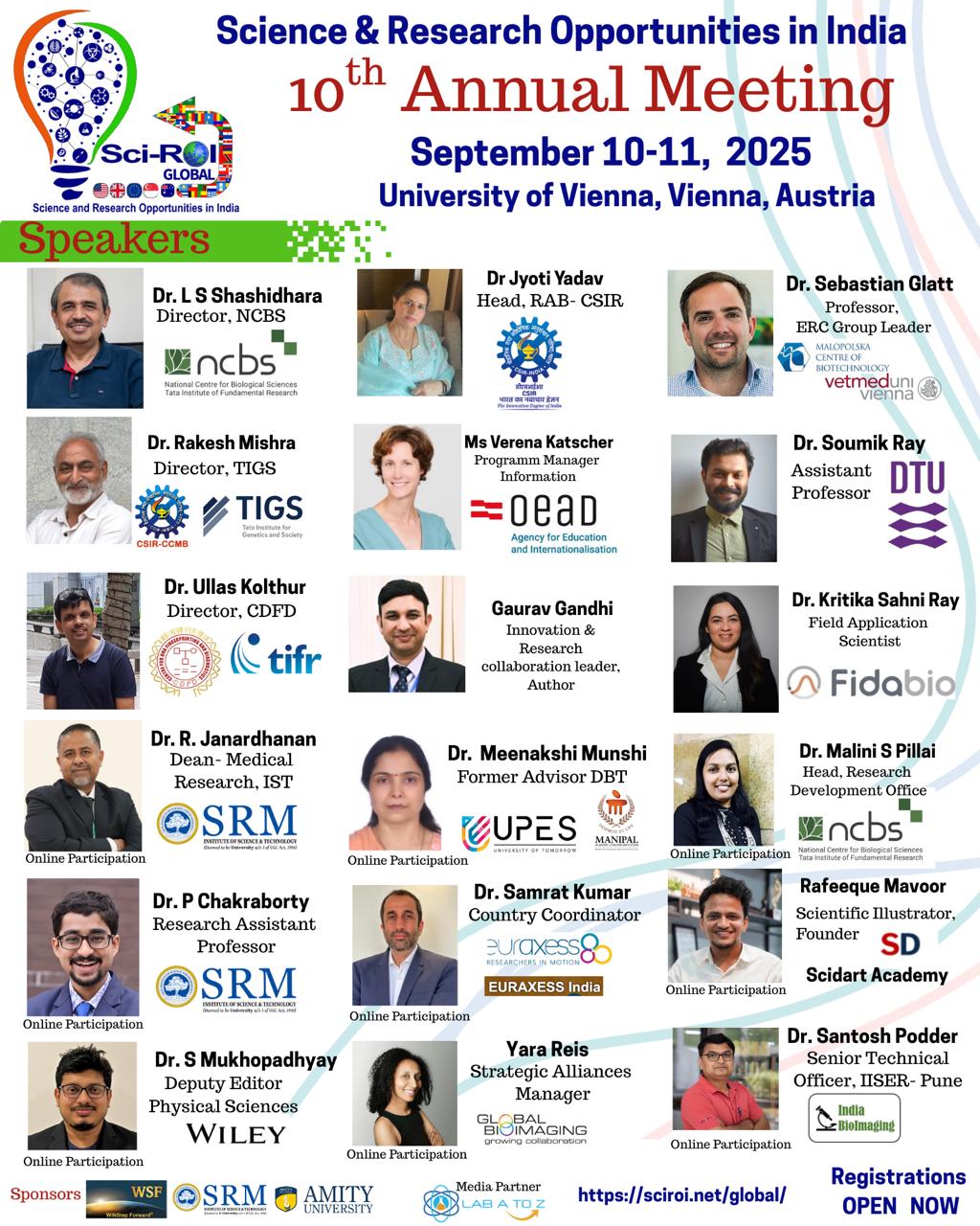 Sci-ROI Global 2023 Annual Event (in-person)SciROI is thrilled to announce that our 8th annual event will be held in-person at St. Jude Children’s Research Hospital, Memphis, Tennessee, USA on 30th September and 1st October. The event will bring together eminent directors of leading Indian institutes, representatives of funding bodies, industry, and recently established faculty members as esteemed speakers and panelists. Don’t miss this unparalleled opportunity to engage with influential leaders and learn more about the STEM ecosystem in India. Learn more about this event HERE |