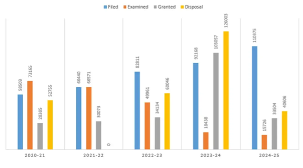 However, not every scientific discovery immediately translates into a commercial product. Many innovations require novelty, years of further research, funding and collaboration before they become viable technologies. According to the annual report by the Intellectual Property of India (2024-2025), India received 110,375 patent applications, of which 15,726 were examined. The Patent Office granted 33,504 patents, while a total of 40,606 applications were disposed of, including patents granted, refused and applications abandoned or withdrawn by applicants.[4]